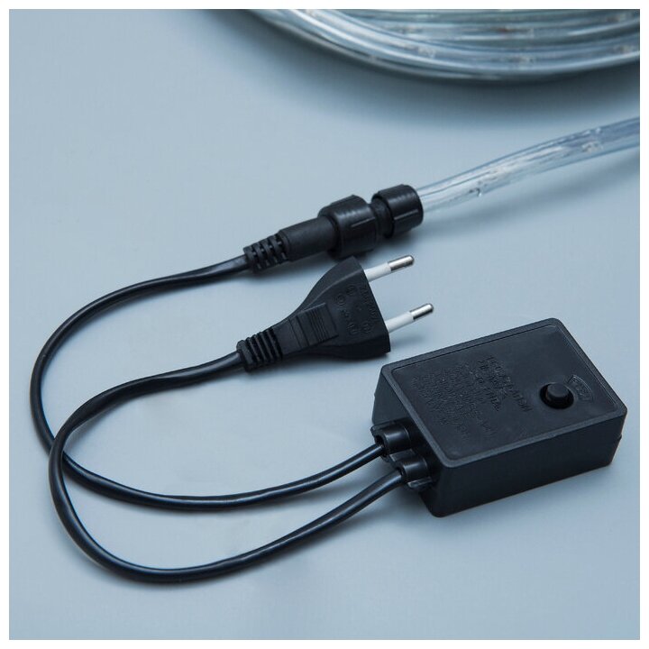 Круглый светодиодный шнур получает питание от сети 220 вольт через специальный комплект подключения, который поставляется производителем.